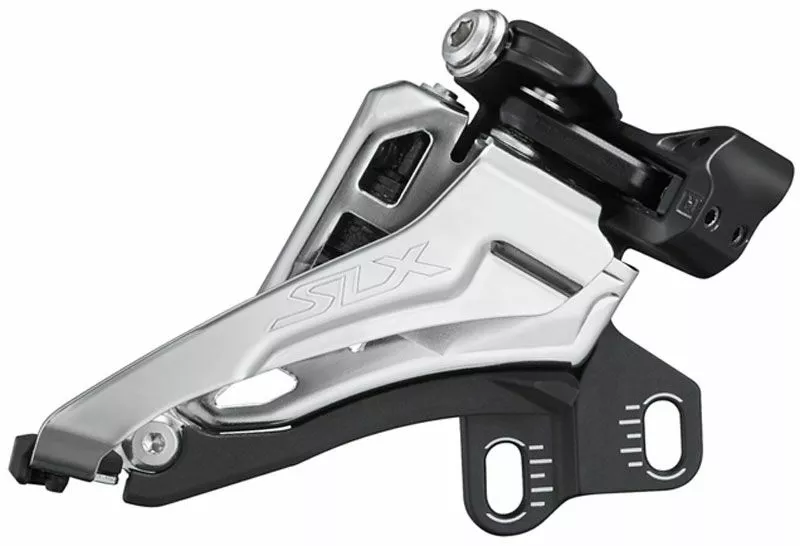 El elegante desviador delantero SLX FD-M7100 de 12 velocidades de Shimano está disponible en versión Direct-Mount (FD-M7100-D), E-Type (FD-M7100-E) y para la posición de abrazadera media (FD-M7100-M). Entre otras cosas, el rendimiento de los cambios mejora gracias a la tecnología de giro lateral, que proporciona 15 mm más de espacio libre entre la pipa de sillín y el neumático.