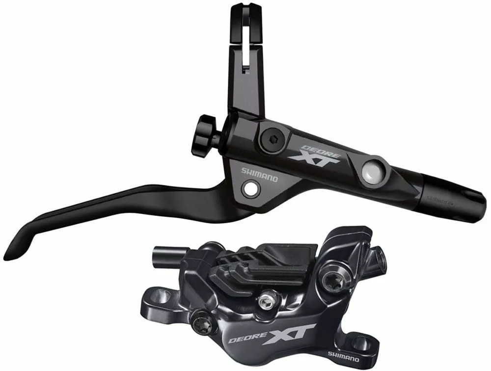 El freno de disco hidráulico XT BR-M8120 de 4 pistones con palanca de freno BL-T8100 de 3 dedos de Shimano encaja perfectamente en la sólida línea del grupo Trekking XT T8000.