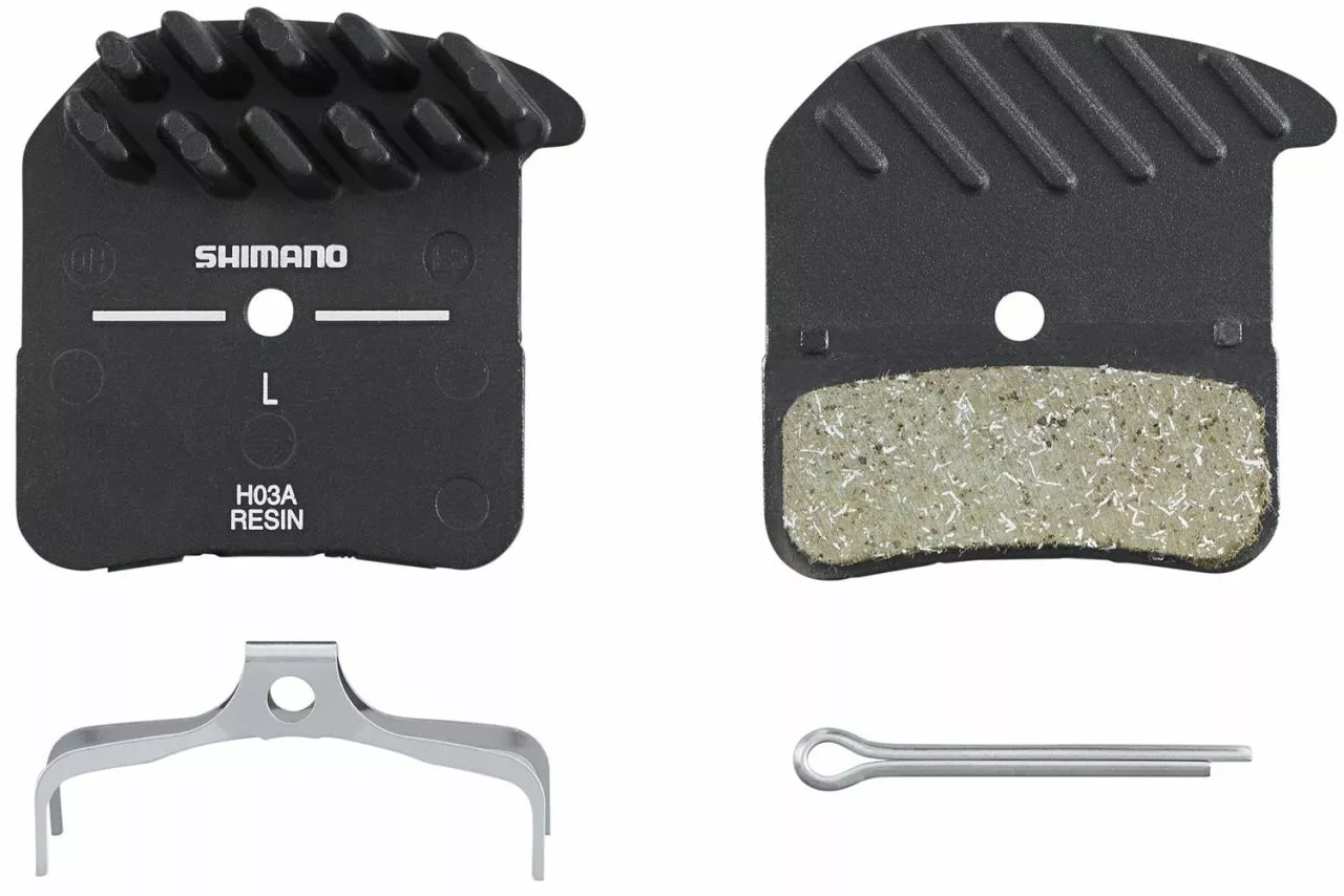 - 1 par de pastillas de freno de disco Shimano H03A-RF incl. muelle y pasador de seguridad