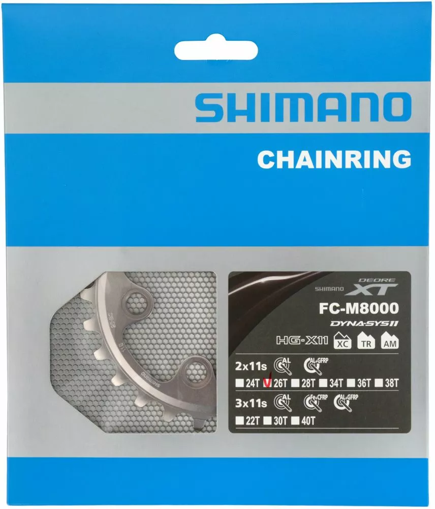Plato Shimano XT de 11 velocidades con 26 dientes y círculo de tornillos de 64 mm para bielas FC-M8000 de 2 velocidades (36-26).