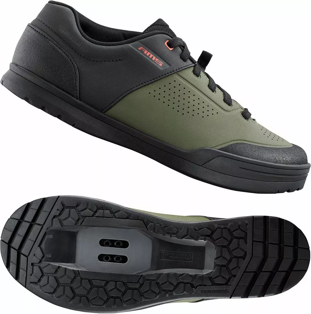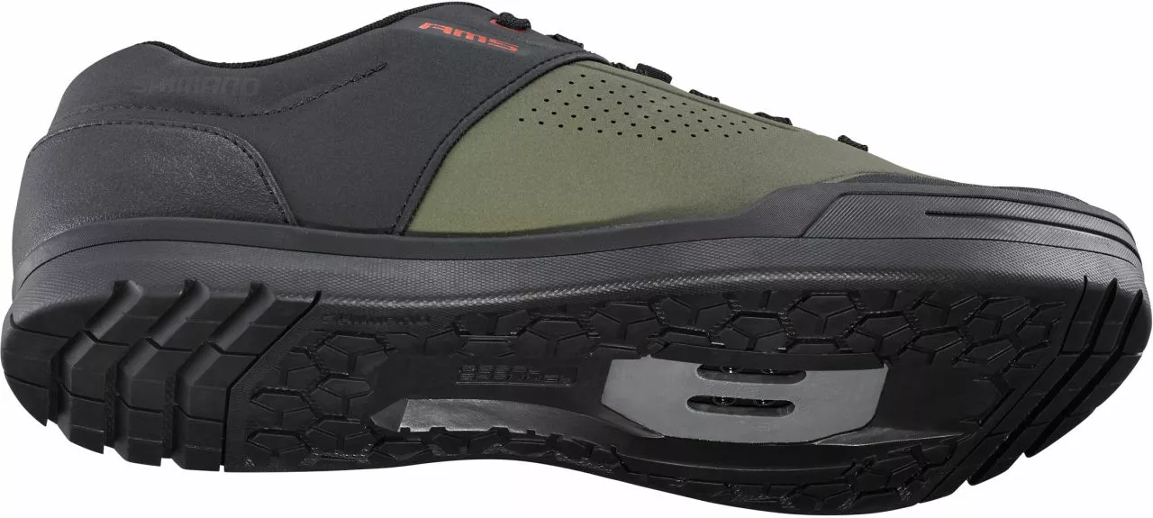 The SH-AM503 is a versatile SPD mountain bike shoe that combines sleek design and essential trail protection. The grippy SHIMANO rubber outsole with toe and heel profile improves stability when locked in and when walking.