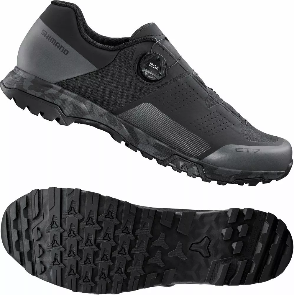 The SH-ET700 is an e-bike shoe with excellent walking comfort and suitable for any weather conditions. The sole with «360° Traction» block tread offers grip on different pedals and surfaces, which makes it also suitable for trekking.