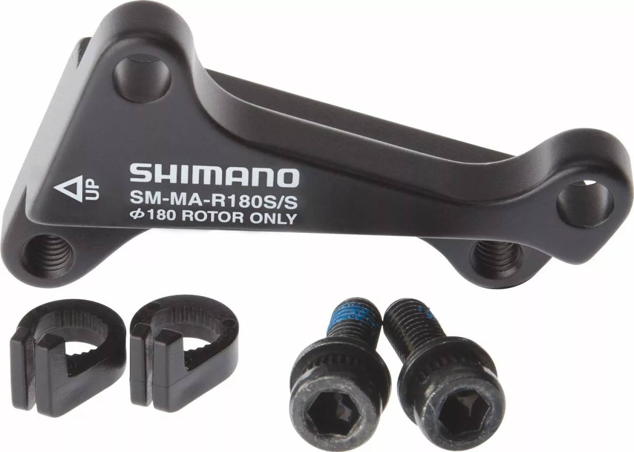 El adaptador Shimano SM-MA-R180S/S permite montar pinzas de freno Shimano IS2000 estándar en cuadros con montaje directo IS2000 estándar junto con discos de freno de 180 mm.