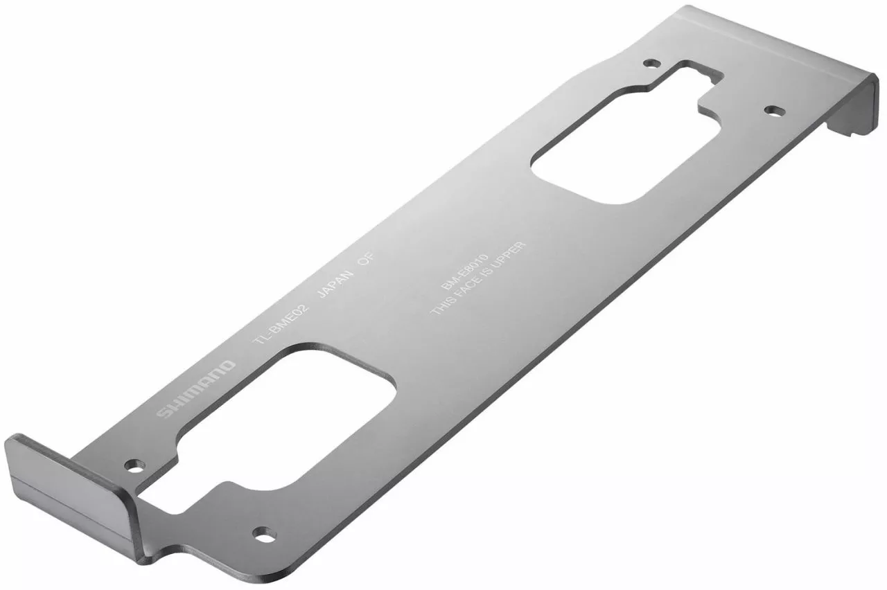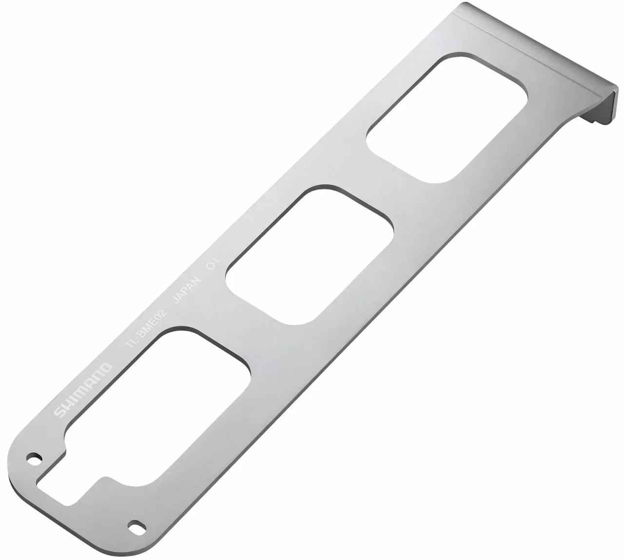 El TL-BME02 es una herramienta especial de medición o plantilla para la alineación exacta y la instalación correcta de los soportes de batería SHIMANO STEPS BM-E8010 y BM-E8016.