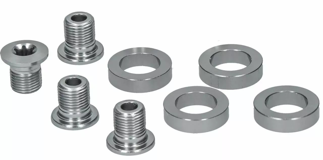 Tornillos de plato Shimano M8 x 9,6 mm con arandelas para bielas Tiagra FC-4703. Adecuado para plato pequeño.